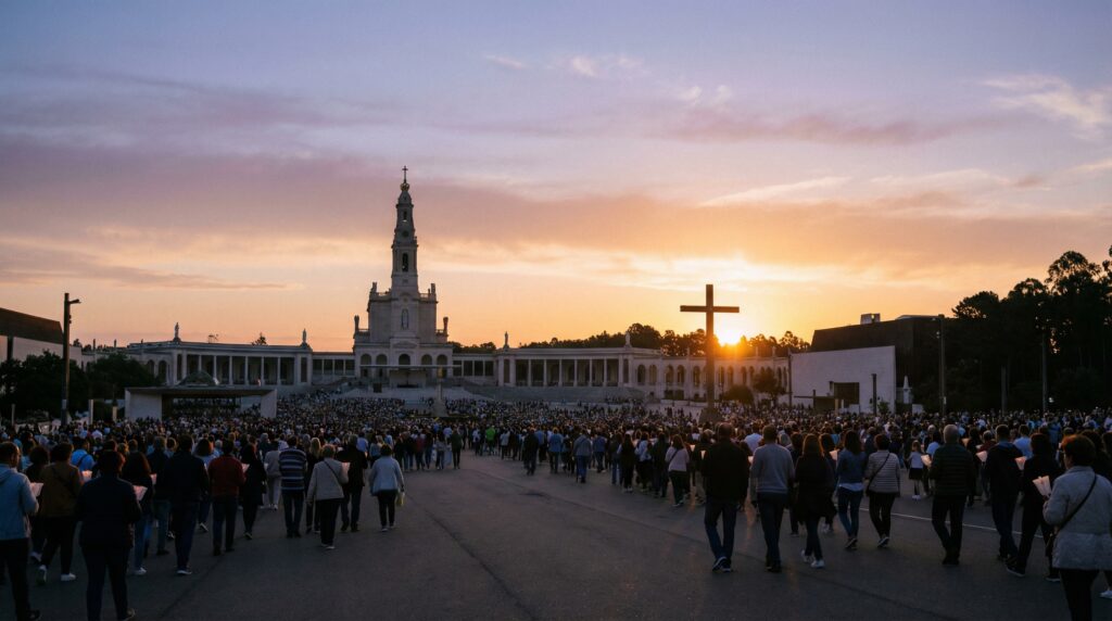 Viagem a Fátima, chegada ao Santuário, tempo para oração, silêncio e reflexão, visita à Capelinha das Aparições e participação em momentos espirituais marcantes.